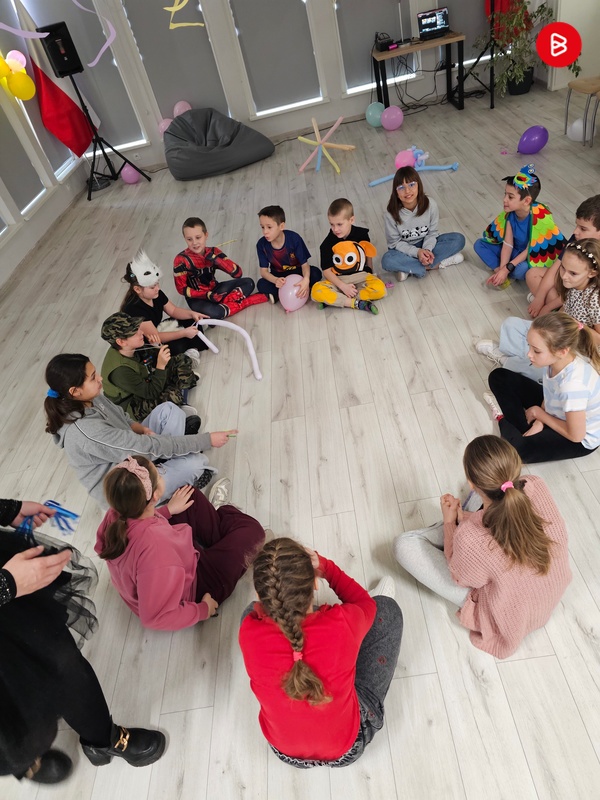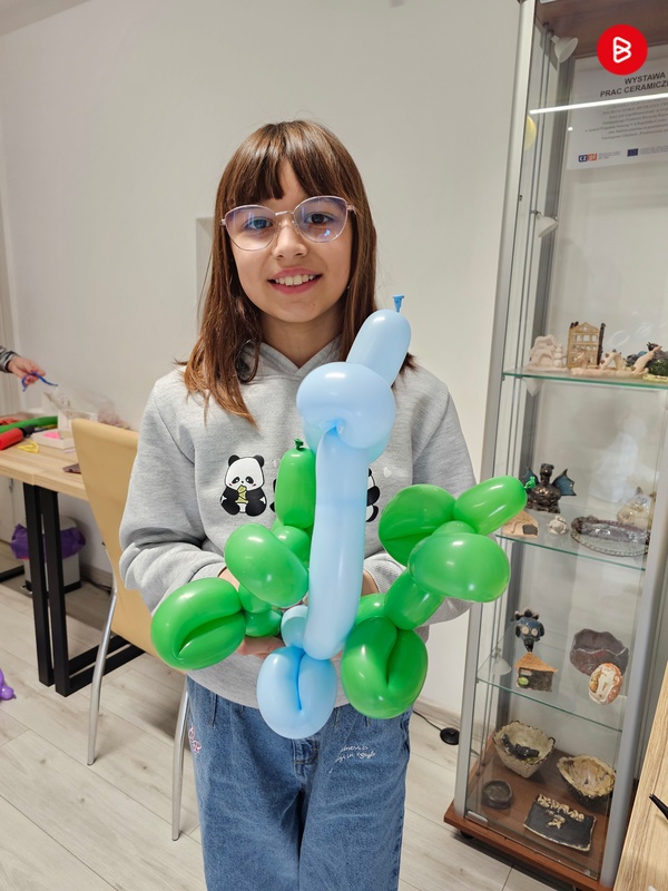 Podczas warsztatów plastycznych przygotowywaliśmy dekoracje sali na bal, stworzyliśmy własnoręcznie kartki z sercem dla najbliższych oraz uczyliśmy się modelowania balonów. Powstały zwierzaki, kwiaty, a nawet… balonowe miecze! Kreatywność uczestników nie miała granic.