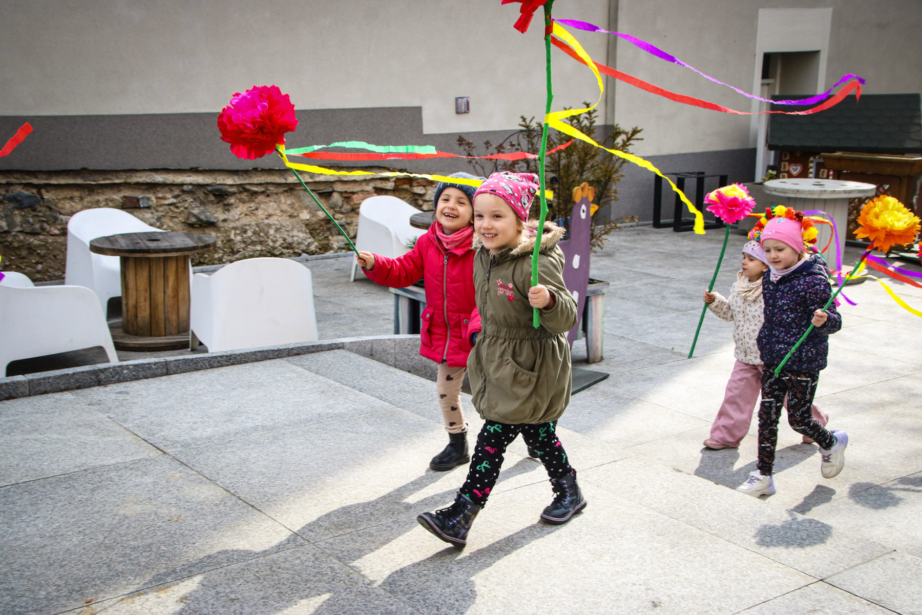 Dzięki zespołowi NaSTroje w składzie Julia Topolanek-Pacan, Bartek Pacan i Paweł Kopeć rynek wypełnił się kolorami, śmiechem i dzieciakami z Zespołu Szkolno-Przedszkolnego im. KEN w Bardzie. Kolorowo ustrojeni uczniowie i radosne przedszkolaki z kwiatami wspólnie głośno przeganiali zimę. Były śpiewy, zagadki, rymowanki i wspólna rywalizacja fair play. W wyjątkowym świętowaniu towarzyszyły nam Marta Ptasińska – Burmistrz Miasta i Gminy Bardo, Katarzyna Krzysińska – Dyrektor ZSP oraz Jarosław Rudnicki – Dyrektor CKiB, a wspólnym zabawom, recytowaniu wierszyków na powitanie wiosny i opowieści o Marzannie nie było końca.